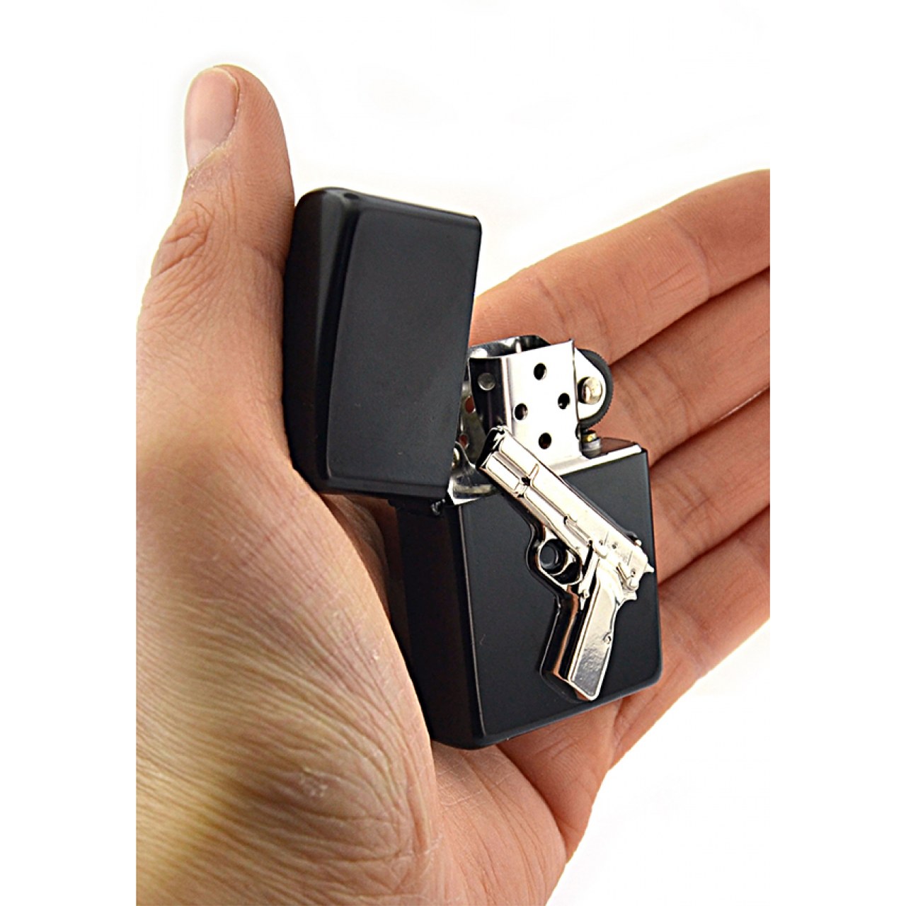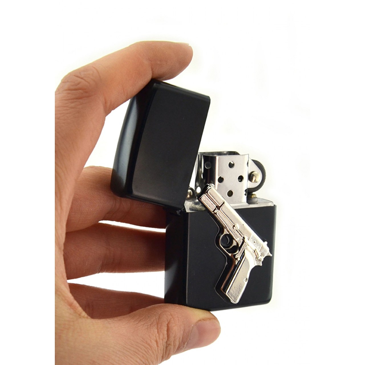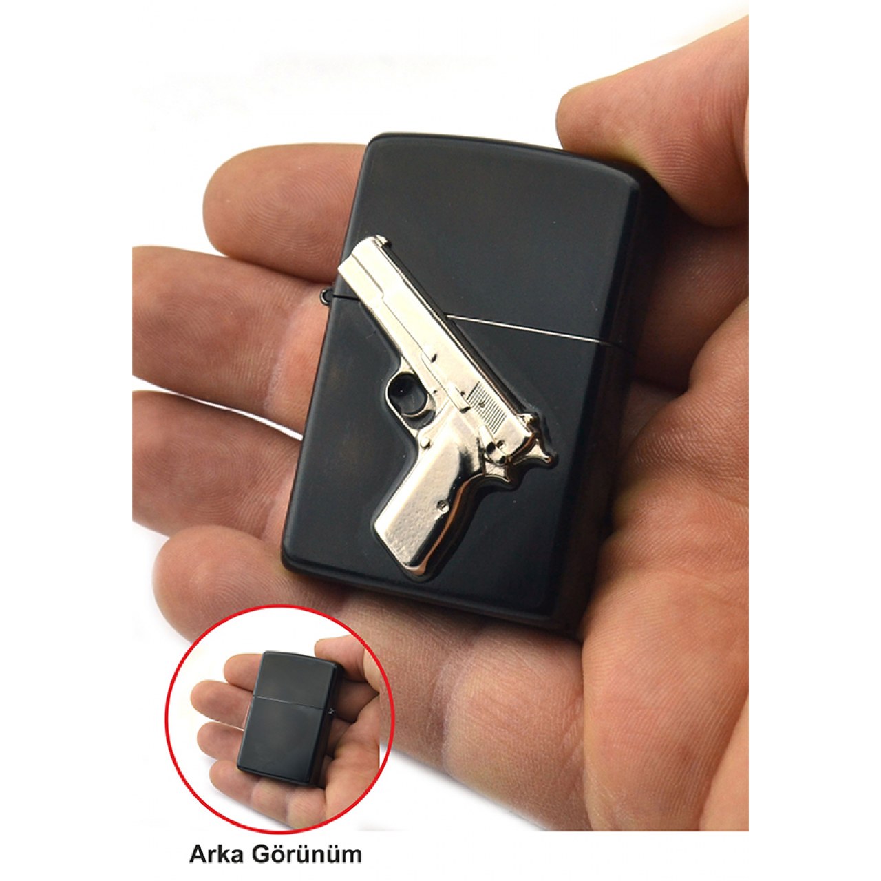 14 lü Tabanca Rölyefli Nikel Benzinli Çakmak