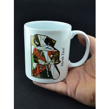 The product is made from first-class ceramic, known for its durability and quality. The printing process is done using the sublimation technique, which permanently bonds the colors to the mug's surface. This ensures the colors will not fade, crack, or peel, and the image will always remain vibrant and new. One side of the mug features the design of the legendary Abrek Zaur, while the other side bears the 30th-anniversary logo of the Caucasian Foundation.