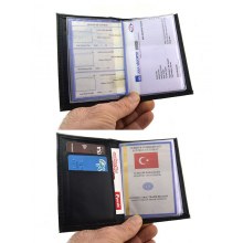 Ön kapakta 2 adet kredi kartı gözü ve altında kart cebi vardır.