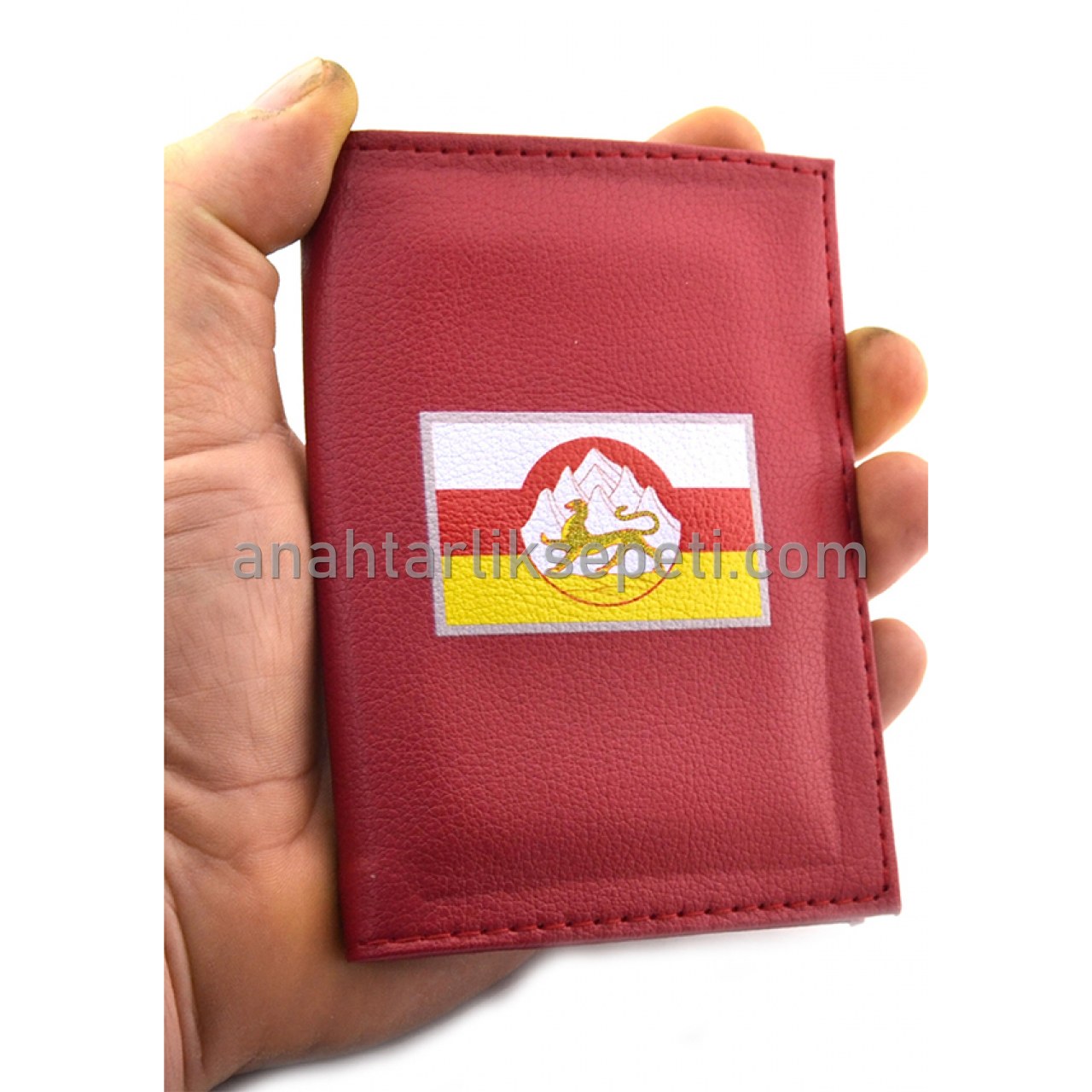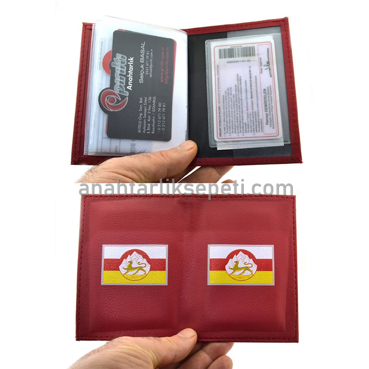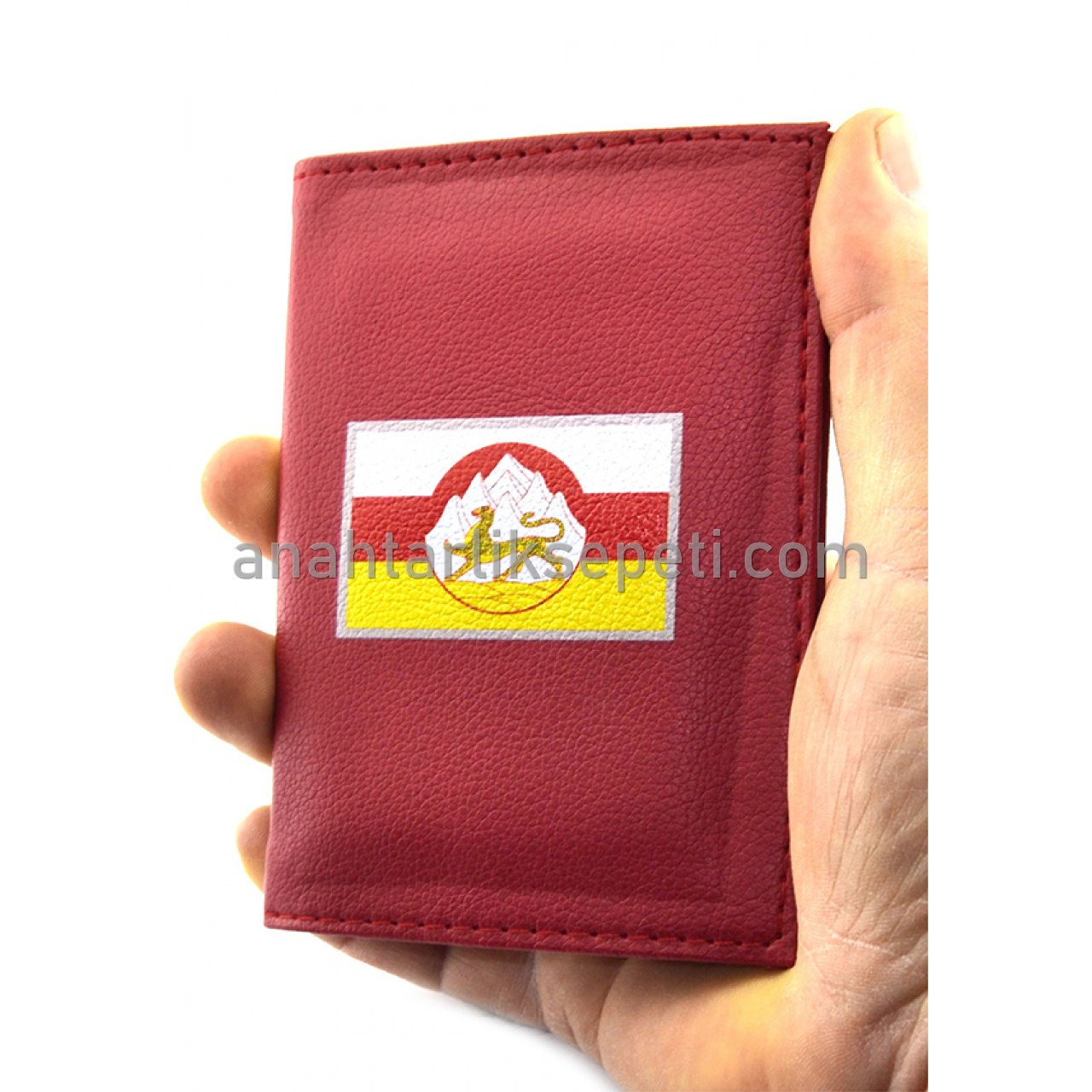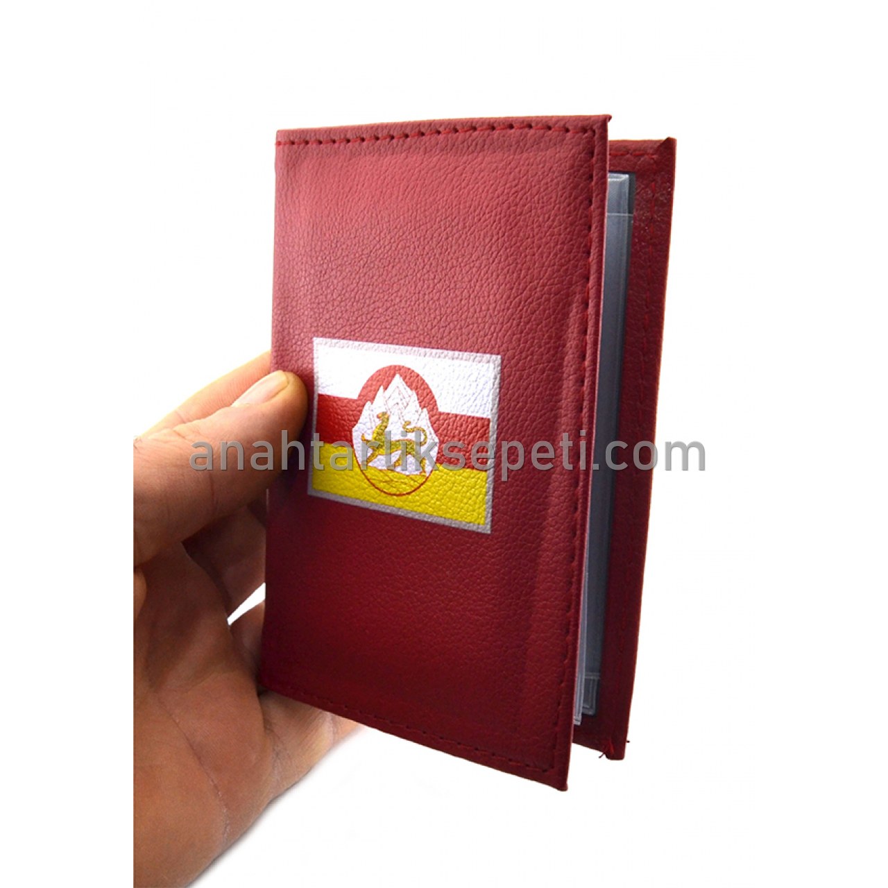 Oset Bayrak baskılı suni deri araç ruhsat kabı Kırmızı
