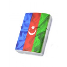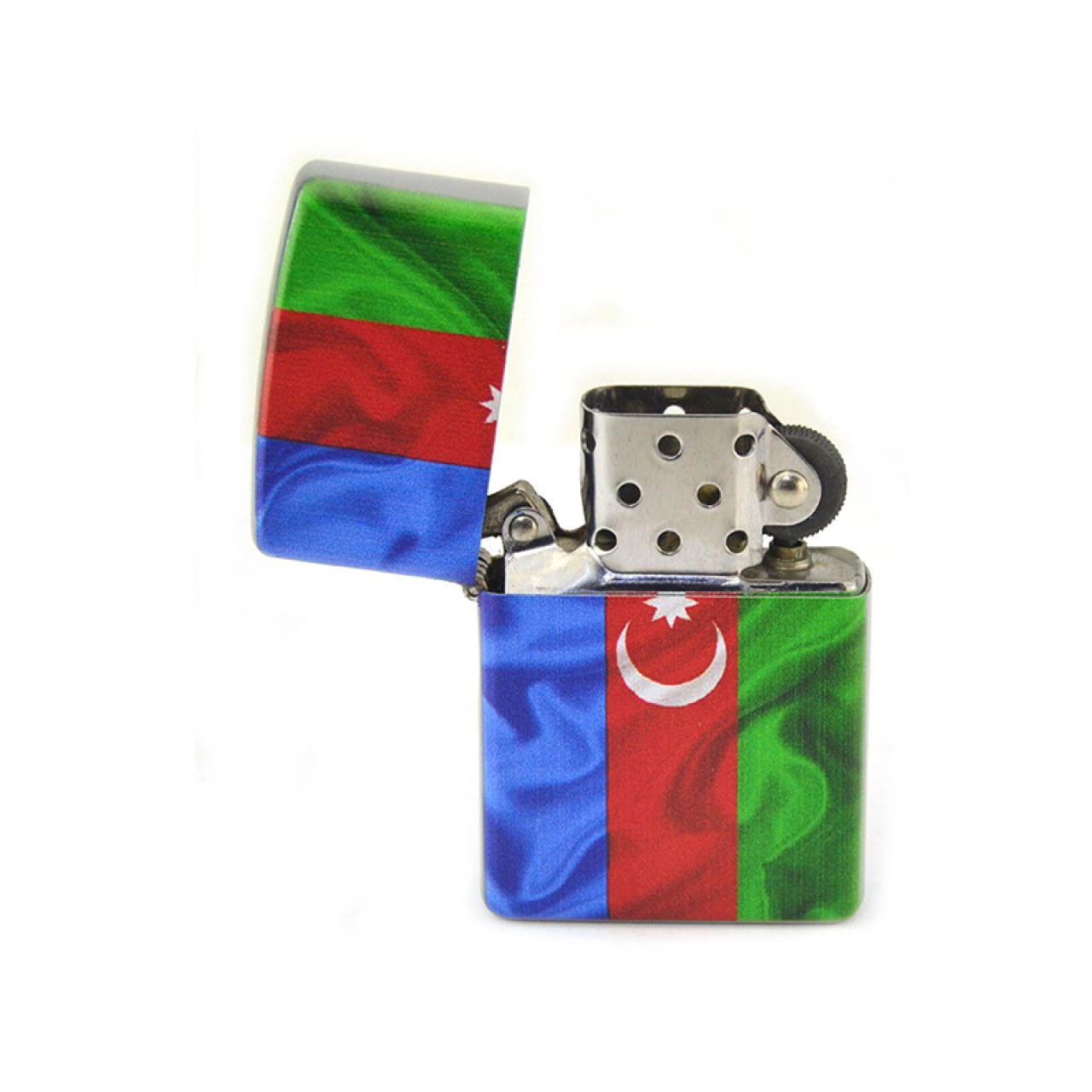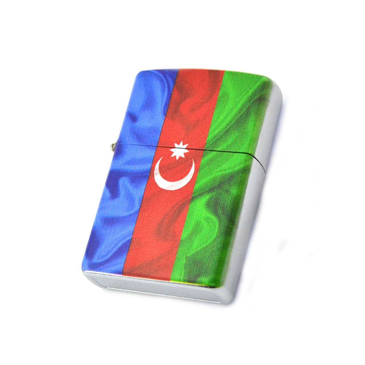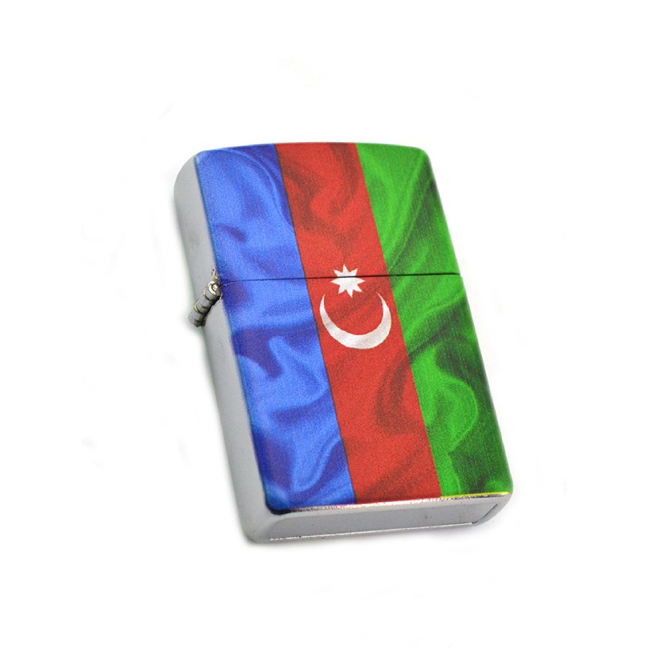 Azerbaycan Bayrak Baskılı Çakmak (Krom)