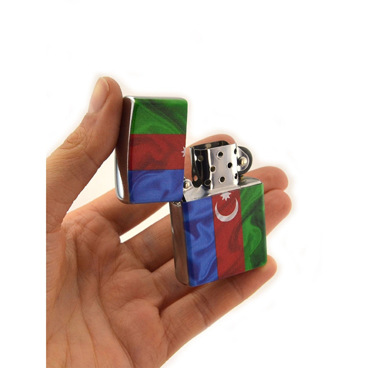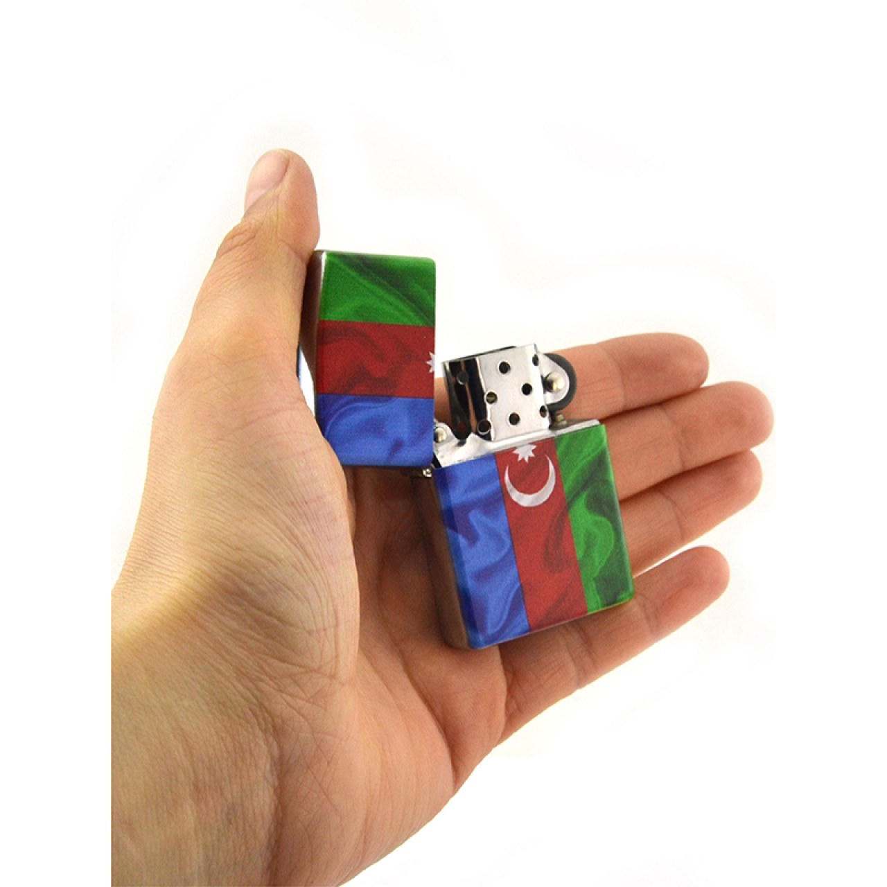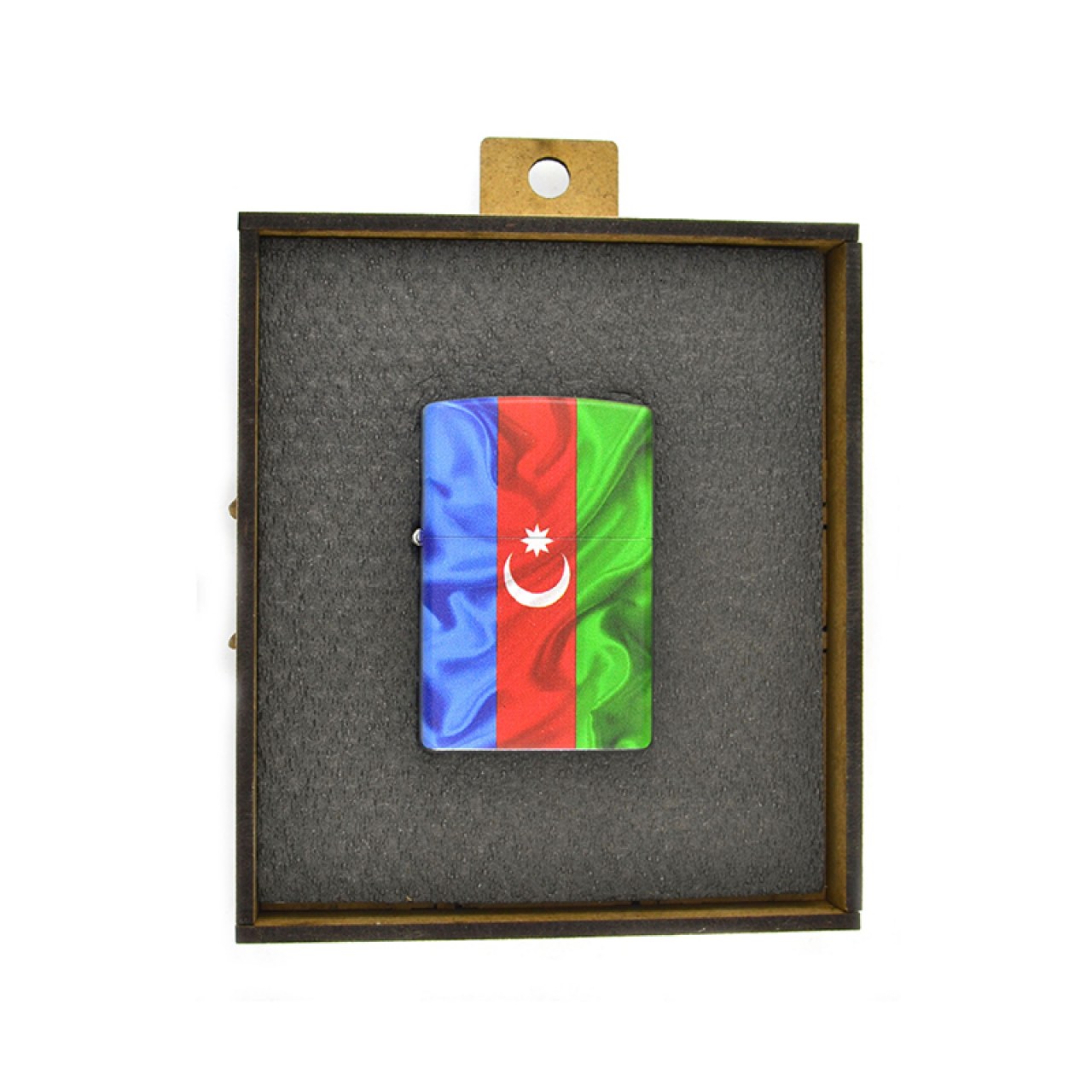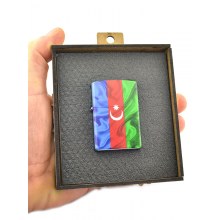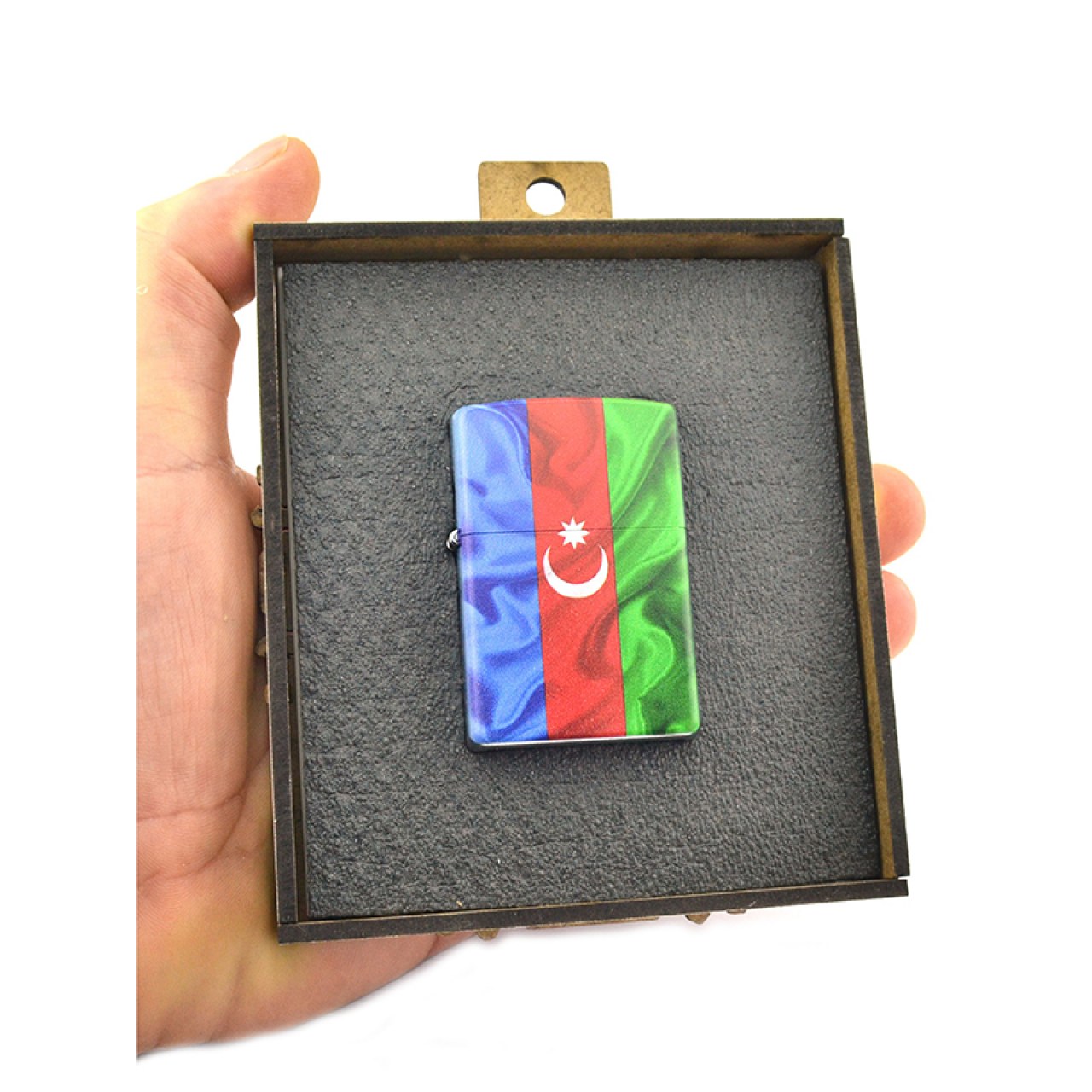 Azerbaycan Bayrak Baskılı Çakmak (Krom)