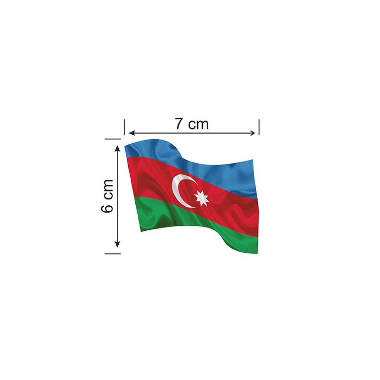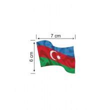 Azerbaycan Dalgalı Bayrak Etiket 7 x 6 cm