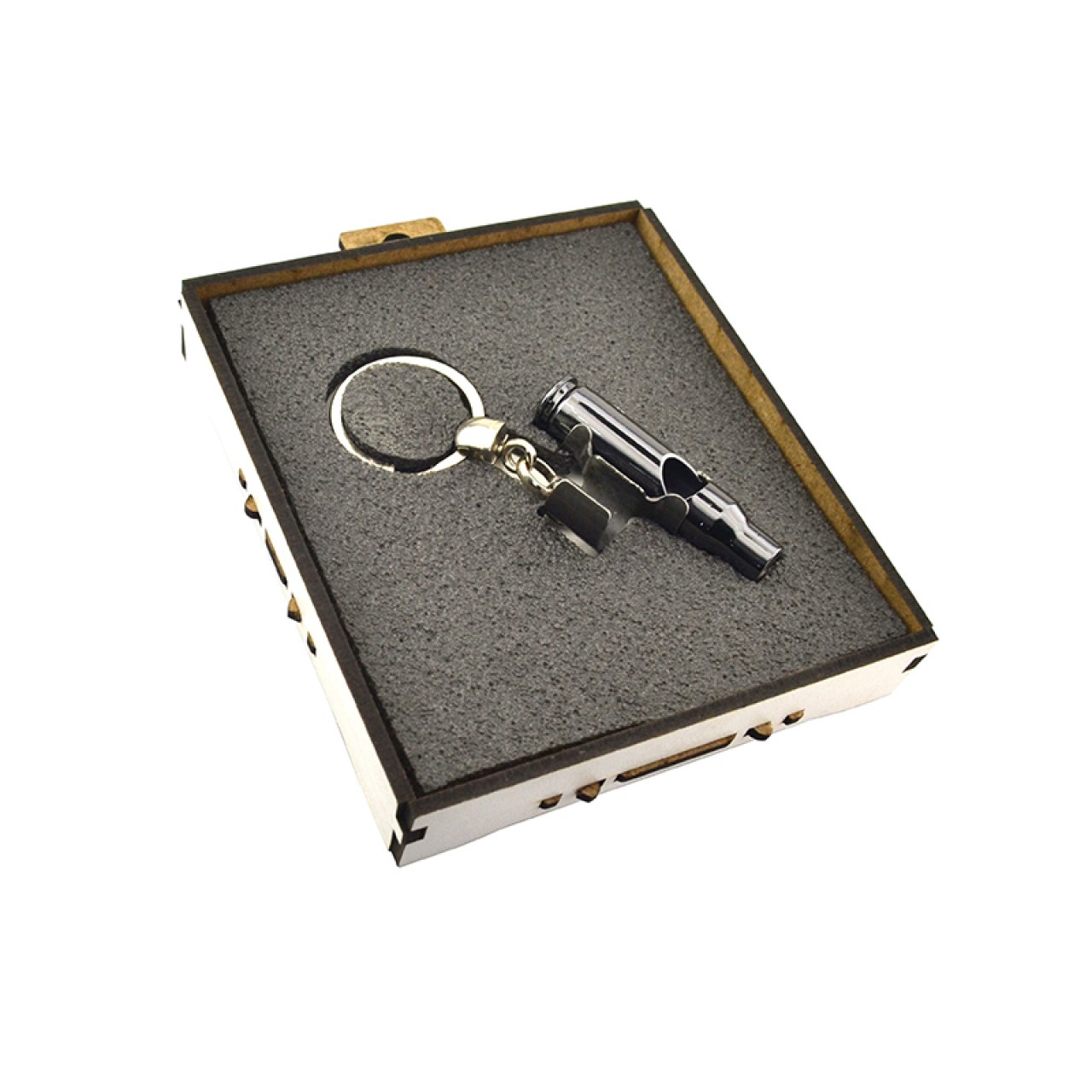 Düdük Anahtarlık Maket Kovan 762 Mayonlu - Metalik Siyah Ahşap Kutulu