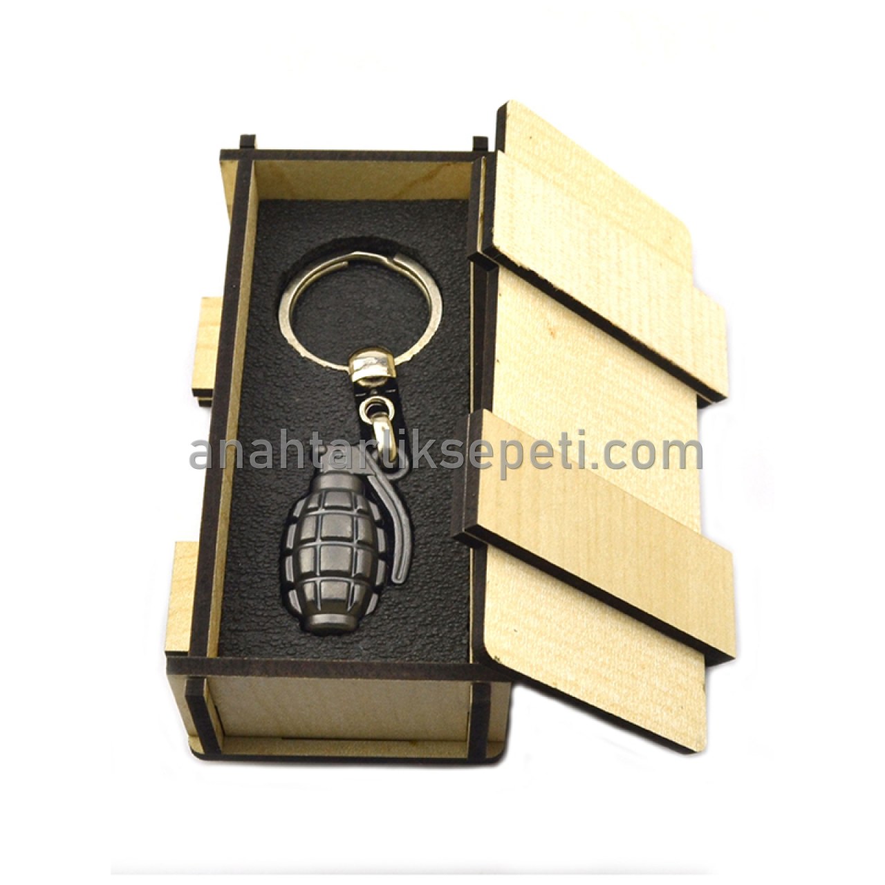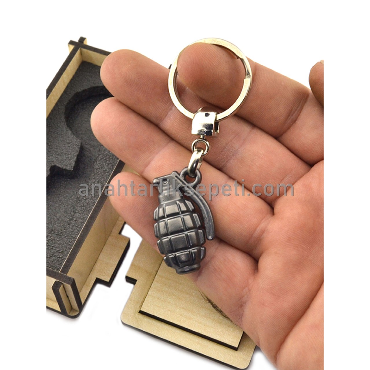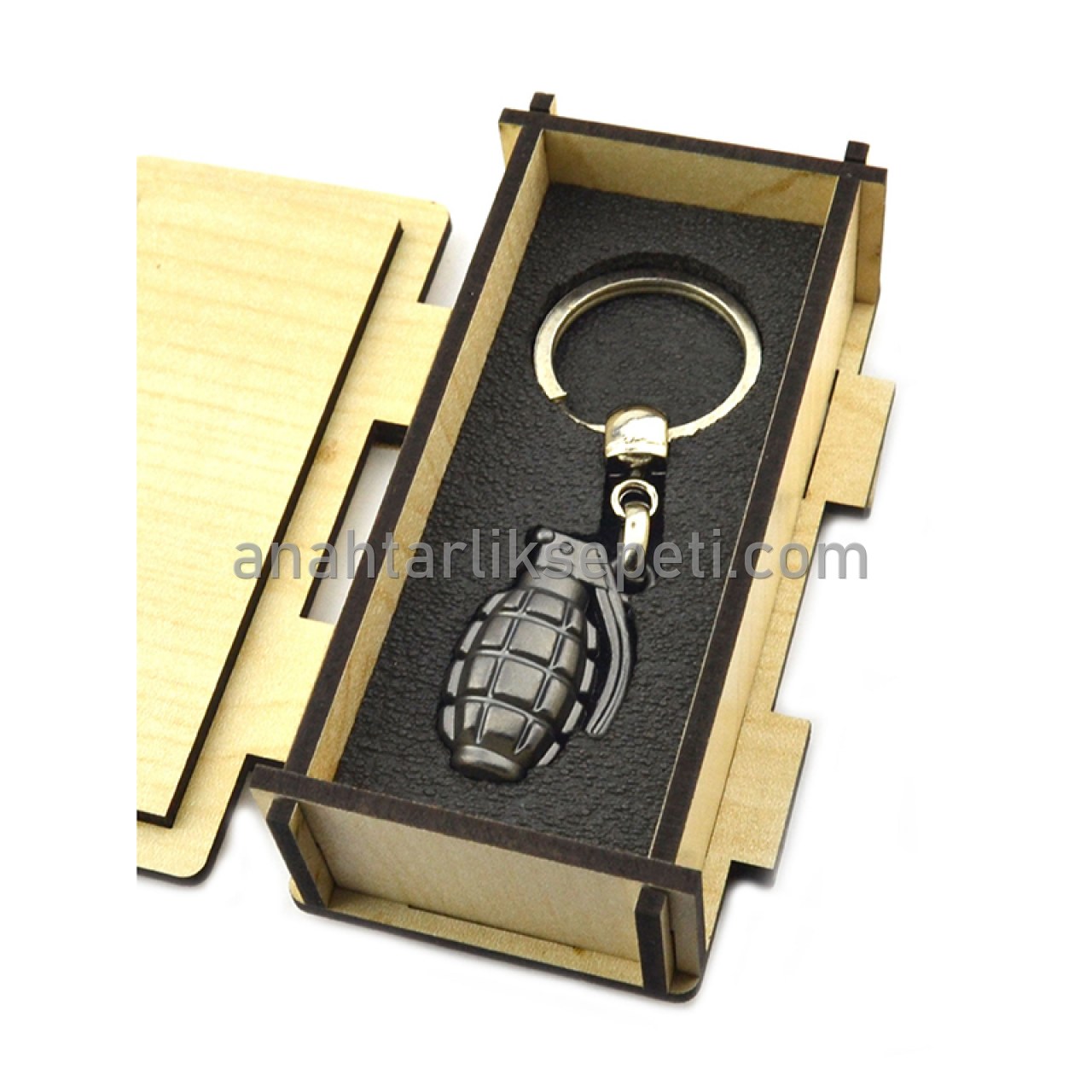 El Bombası - Grenade - Anahtarlık - Mat Siyah Ahşap Kutulu