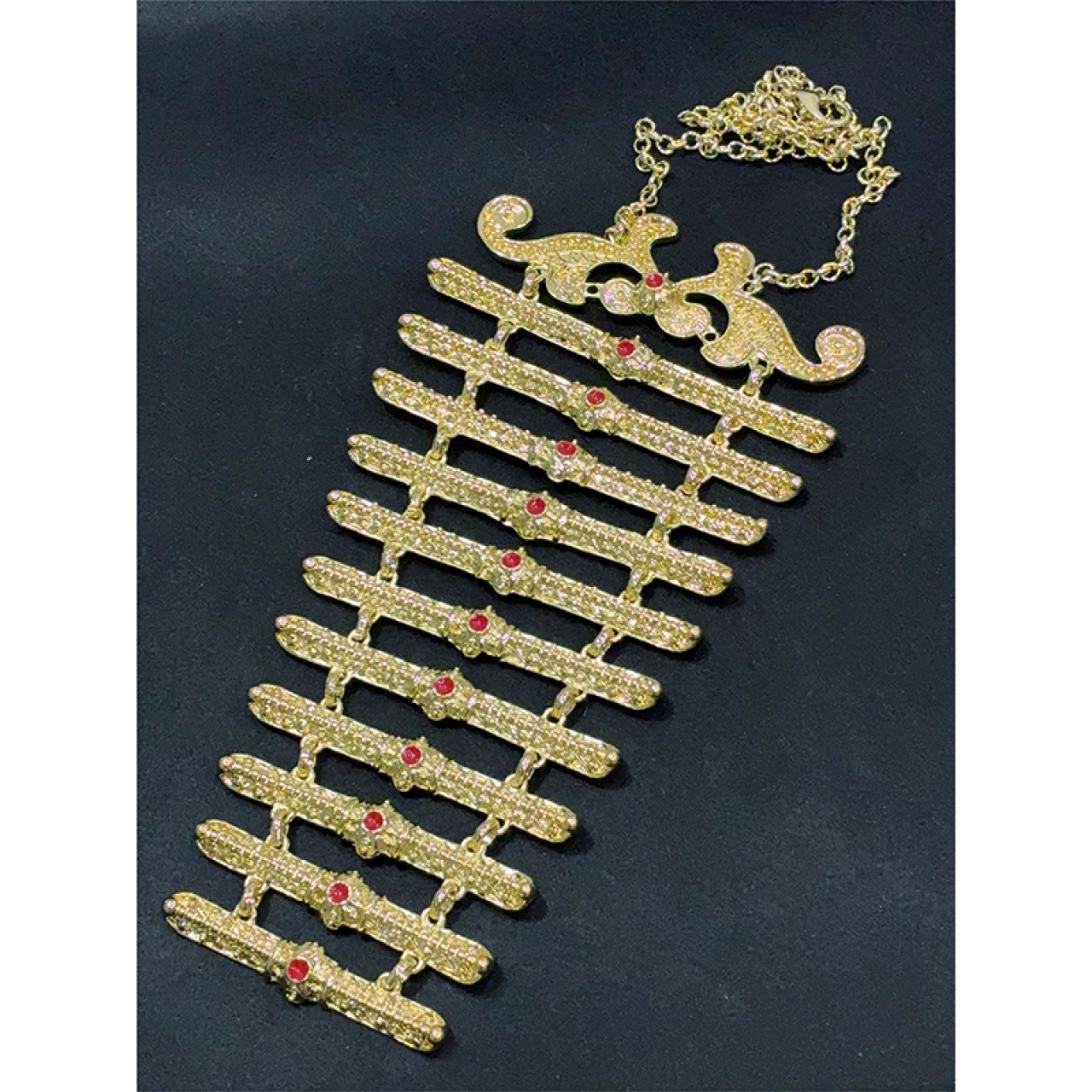 This special Caucasian Circassian Kuban Necklace is inspired by traditional Circassian culture. Made of zamak metal with a gold-plated finish, it offers a stylish look. Thanks to its varnish coating, it is hypoallergenic and comfortable for long-term wear.