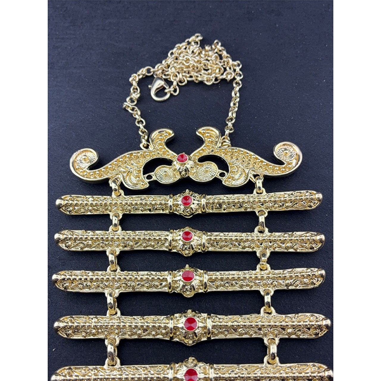 Это уникальное Кавказское Черкесское Кубанское Колье вдохновлено традиционной черкесской культурой. Изготовлено из сплава замак с золотистым покрытием, оно выглядит стильно и благородно. Благодаря лаковому покрытию, колье гипоаллергенно и удобно для длительного ношения.