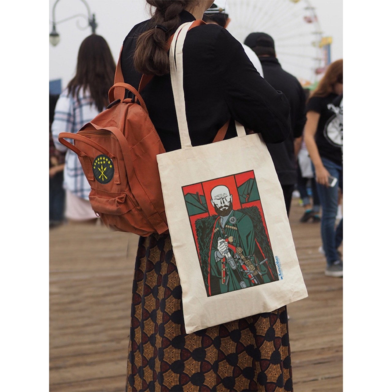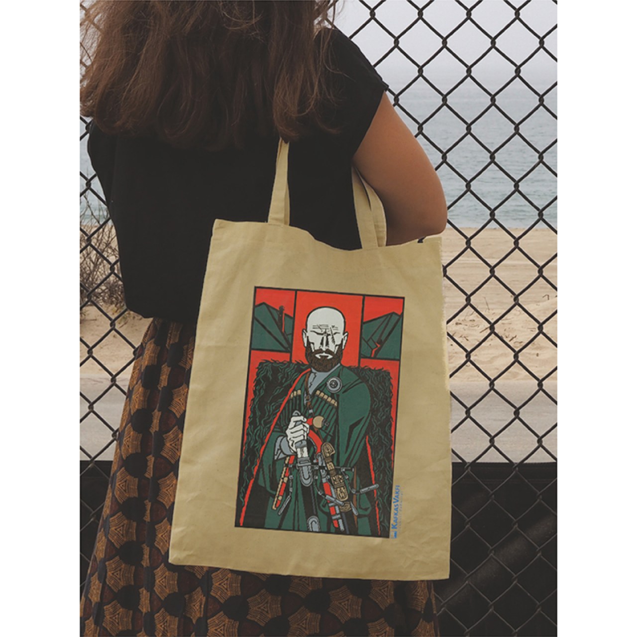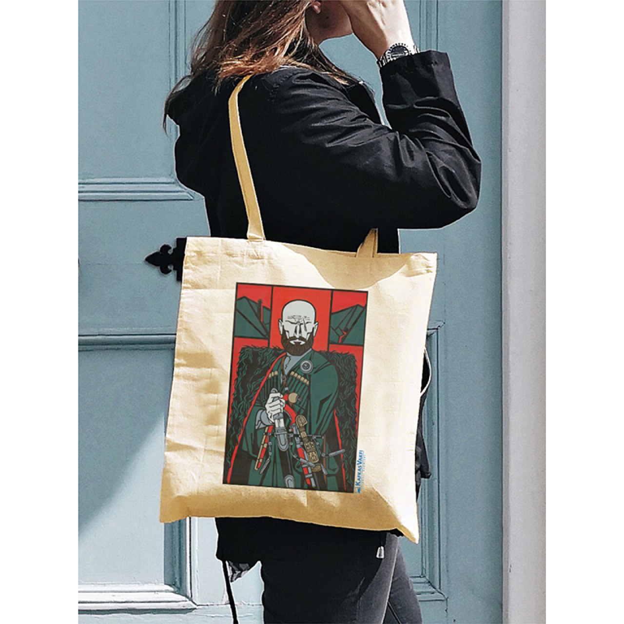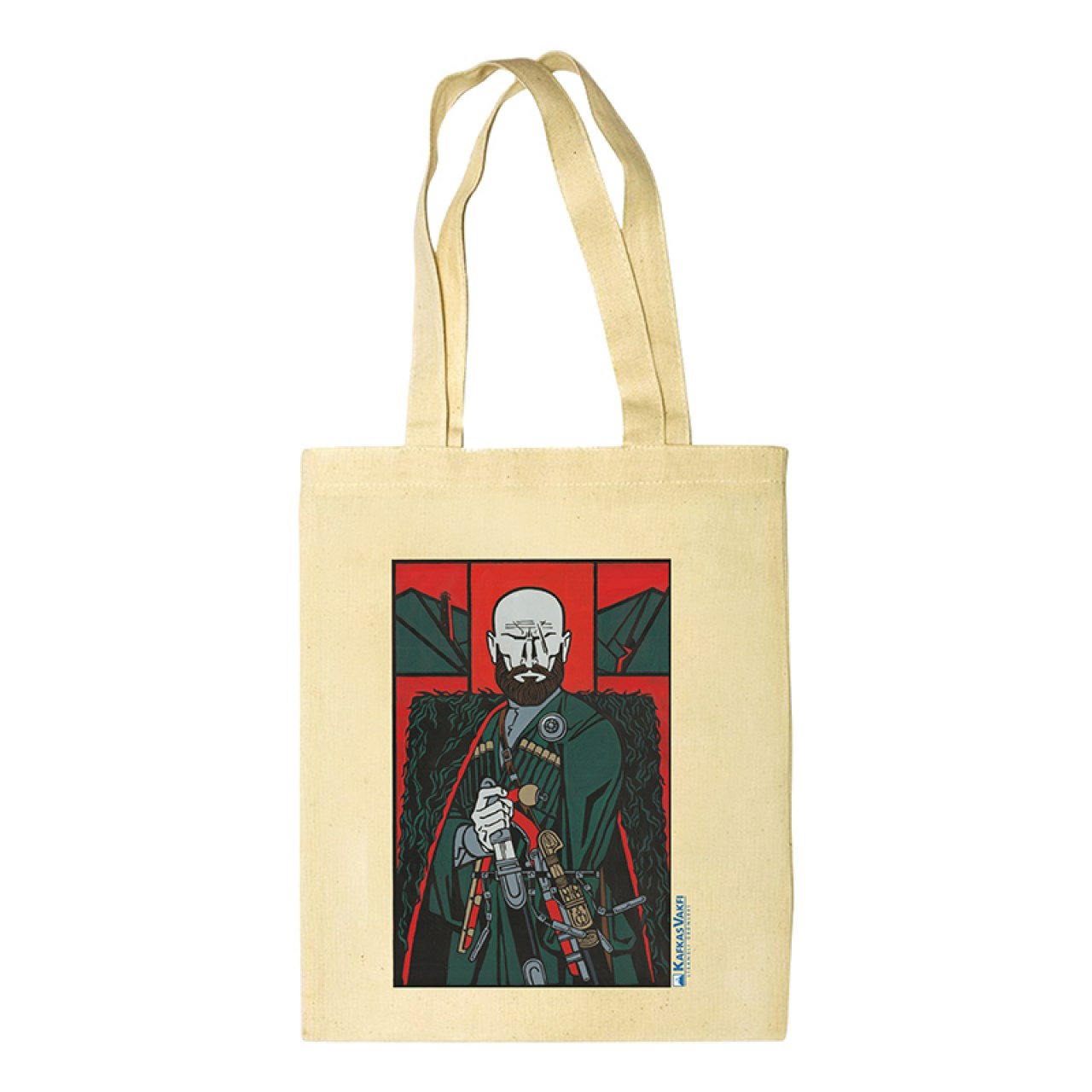 A special collection product that reflects the legendary spirit of Caucasian culture and the nobility of the Chechen people. Part of the original licensed products series by the Caucasian Foundation, this tote bag features the breathtaking graphic work "Chechen Highlander" by Chechen artist Rüstem Yahikhanov. Each bag is a tribute to the rich mythological and historical heritage of the Caucasus. Thanks to high-quality digital printing technique, the finest details of the artwork are vividly transferred onto the fabric.