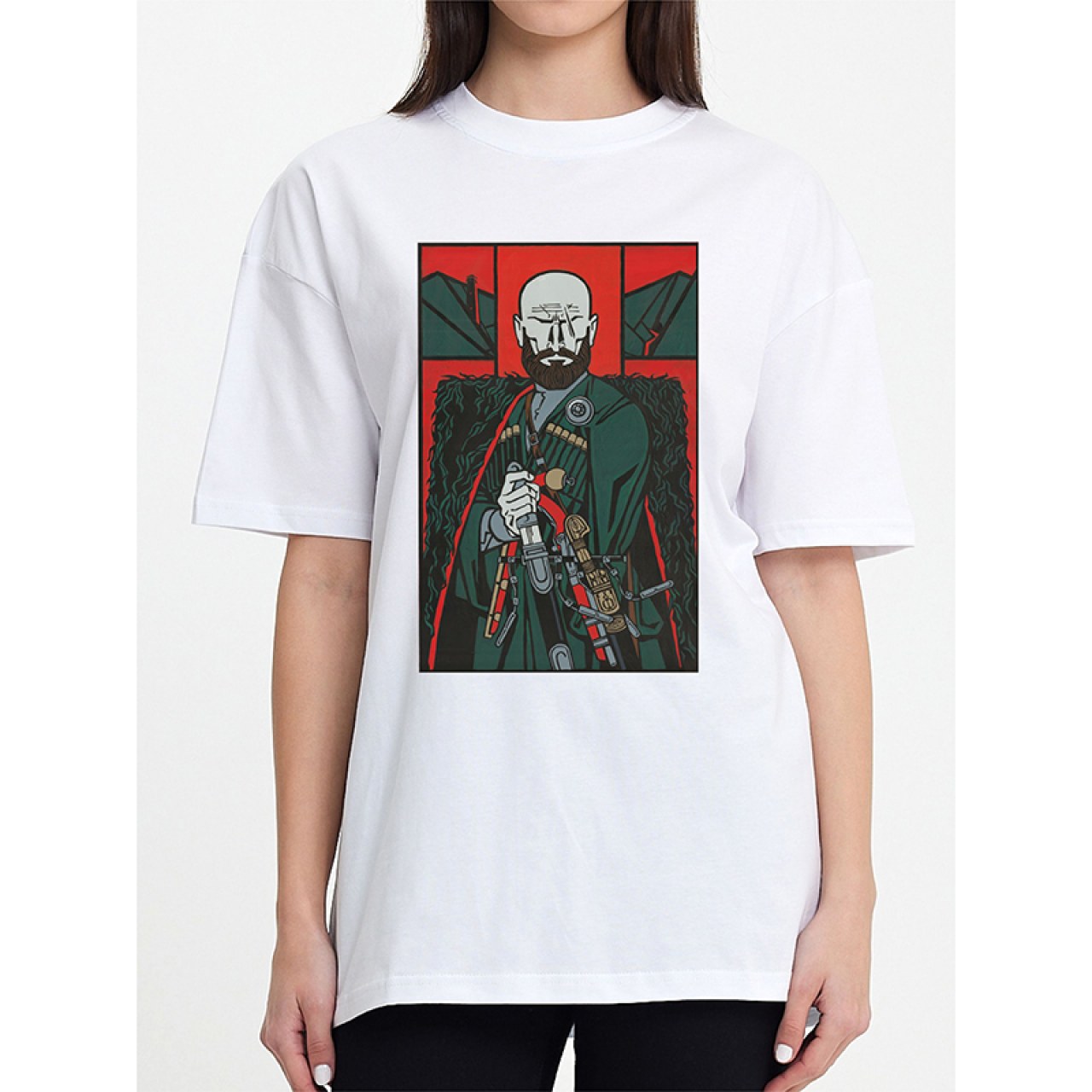 Tişört üzerindeki tüm grafik ve tasarımların telif hakkı Çeçen Ressam Rüstem Yahikhanov'a aittir. Bu tasarımların izinsiz kopyalanması, çoğaltılması veya kullanılması telif hakkı yasalarına aykırıdır.
