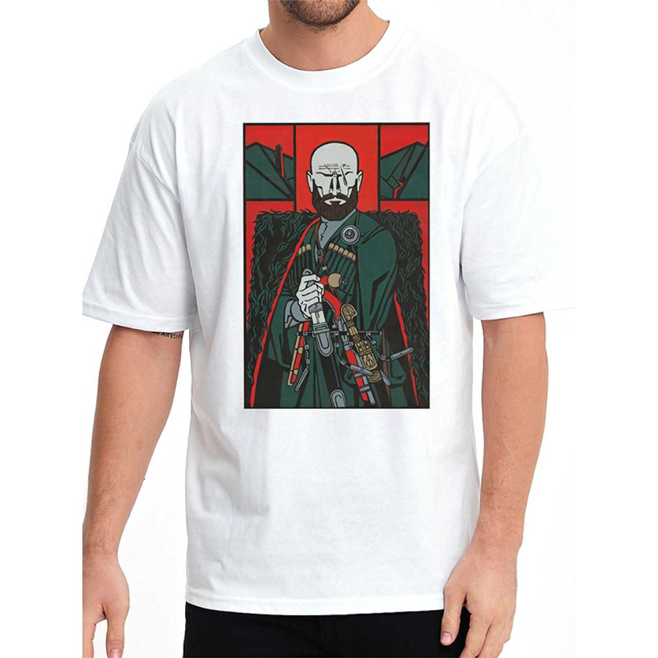 Kafkas Vakfı Lisanslı - Özgün "Baysangur Çeçen Dağlı" Baskılı Koleksiyon Tişörtü