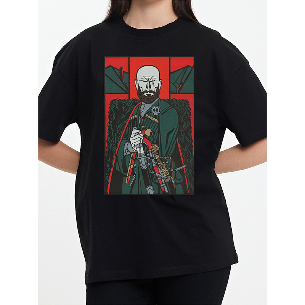 Особенный предмет коллекции, отражающий дух и легендарную стойкость кавказской культуры! Официально лицензированная Фондом Кавказа, эта черная футболка украшена впечатляющей работой «Чеченский Горец» известного чеченского художника Рустема Яхиханова. Каждая футболка является оригинальным произведением искусства, что делает ее не просто предметом одежды, но и выражением культуры. Она предлагает комфорт и долговечность благодаря высококачественной, нетоксичной печати и ткани из хлопка первого сорта.