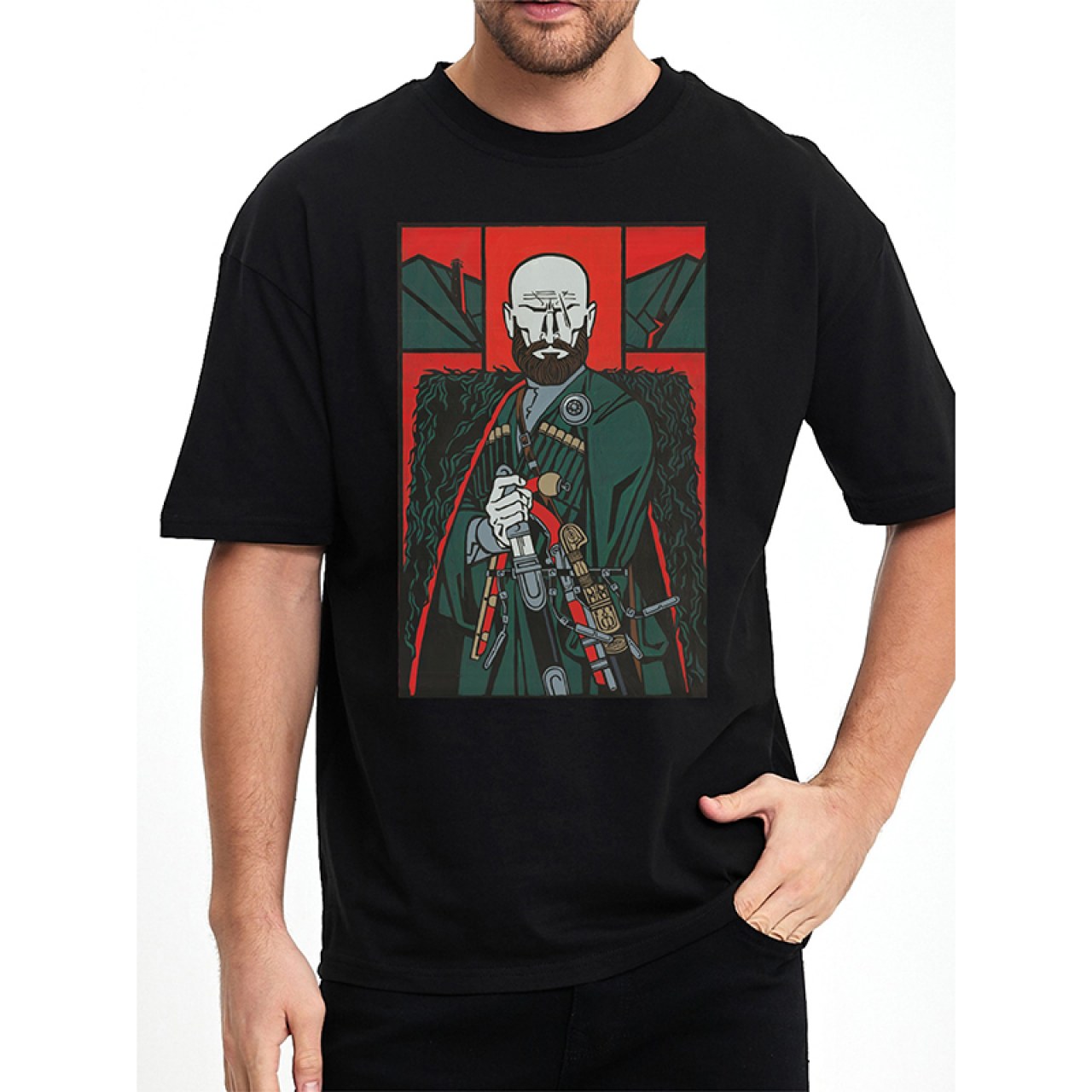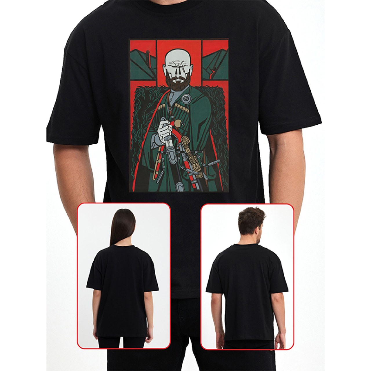 A special collection piece that reflects the spirit and legendary resilience of Caucasian culture! Officially licensed by the Caucasian Foundation, this black t-shirt features the impressive work "Chechen Highlander" by the famous Chechen artist Rüstem Yahikhanov. Each t-shirt is an original work of art, making it not just a garment but also an expression of culture. It offers both comfort and durability with its high-quality, non-toxic prints and first-class cotton fabric.