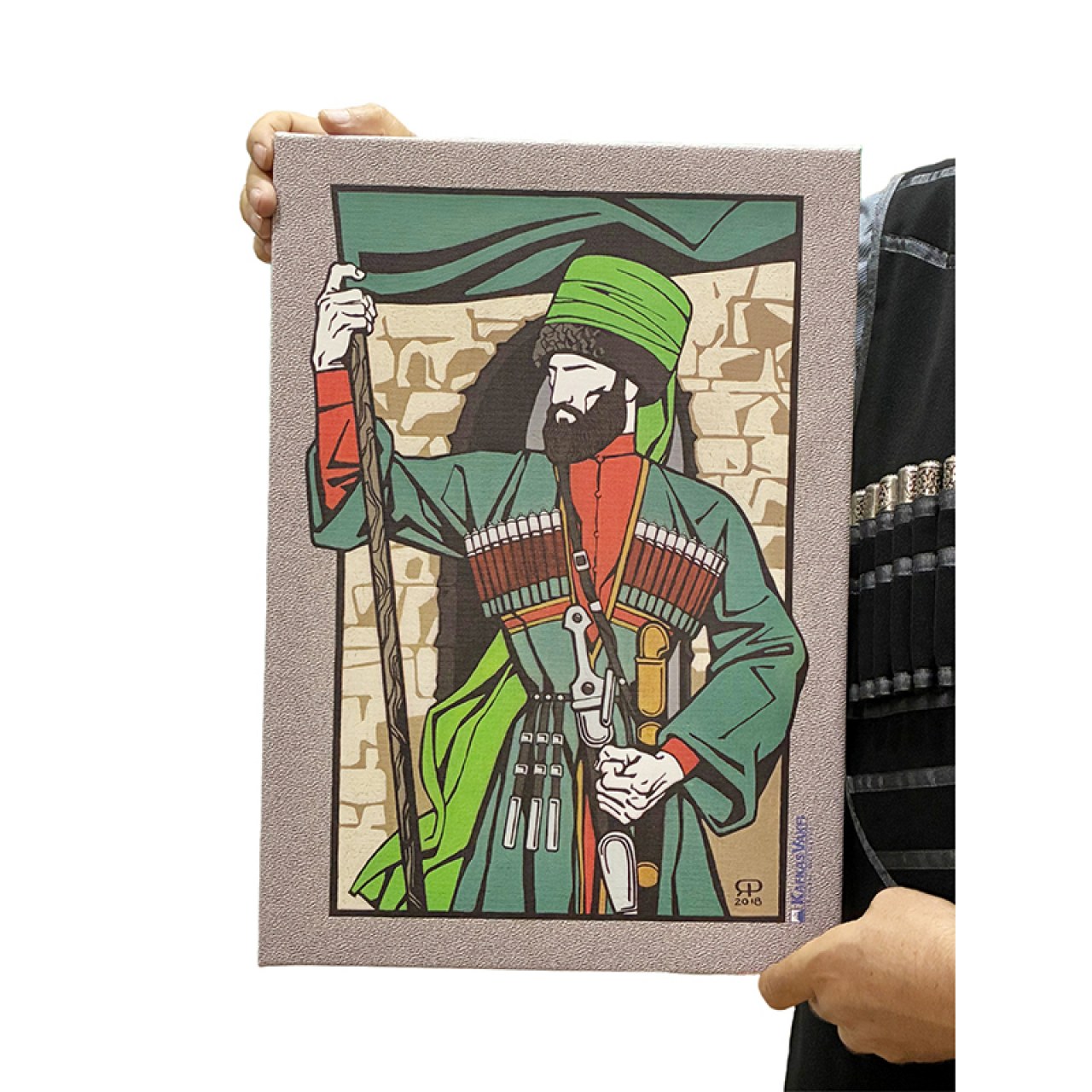 Bring the historical and spiritual portrait of the legendary Caucasian leader Sheikh Mansur into your home with this specially designed licensed canvas painting. This piece, created with the official license of the Caucasian Foundation and the original drawings of Chechen artist Rustem Yakhikhanov, is both an aesthetic decoration and a profound historical memorial object. The painting is produced using high-quality printing techniques, notable for its vibrant colors and details.