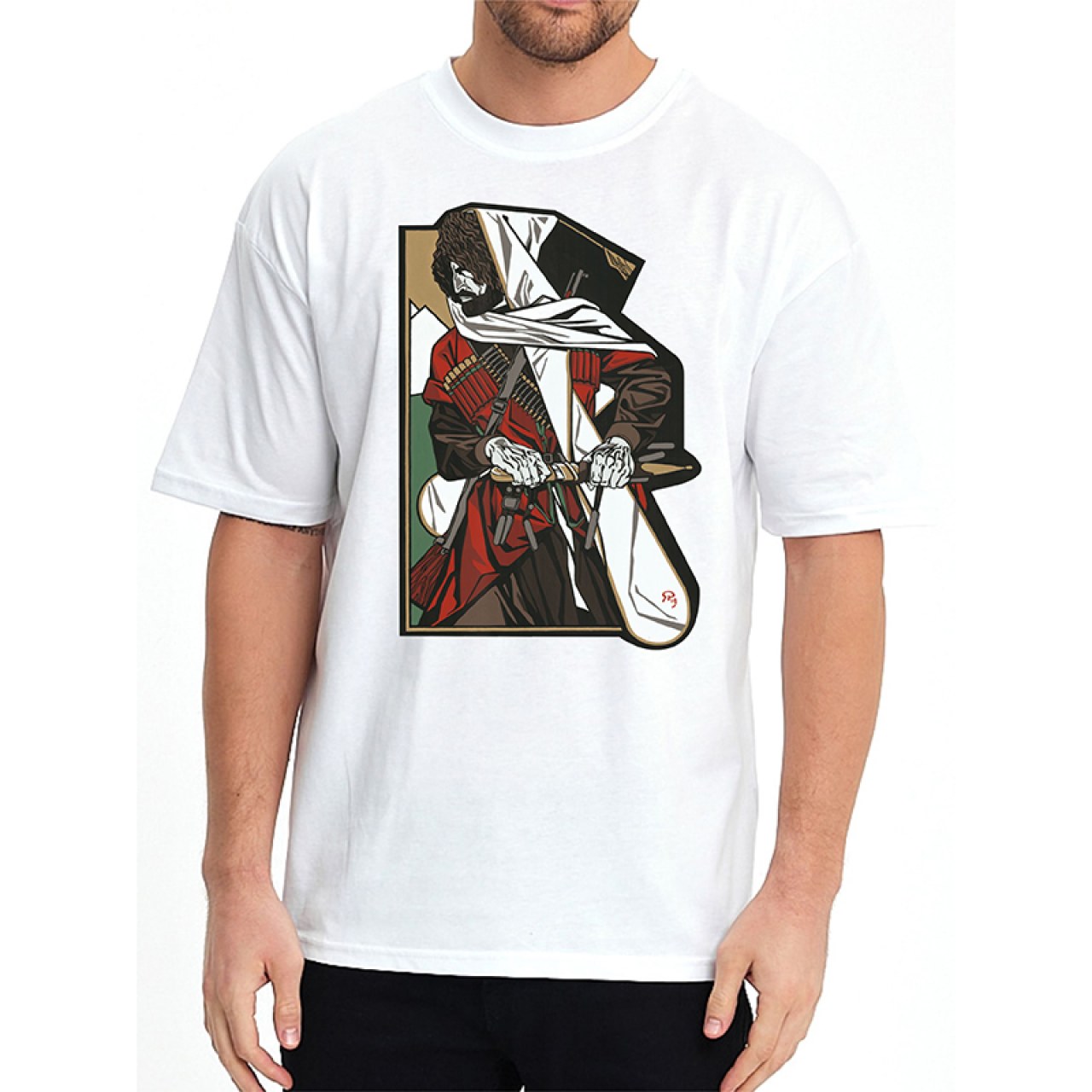 Лицензированная продукция Фонда Кавказа - Кавказские Легенды: Белая Футболка «Абрек Заур»