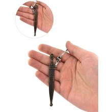 The Caucasian Dagger Keychain brings an authentic symbol of Caucasian culture into your daily life! Made from antique yellow-plated zamak metal, this stylish and sturdy keychain features a 9.5 cm length and 1.5 cm width, making it a practical accessory. Weighing 30-32 grams, its robust construction stands out, while its 14.5 x 6 cm packaging ensures a premium presentation.