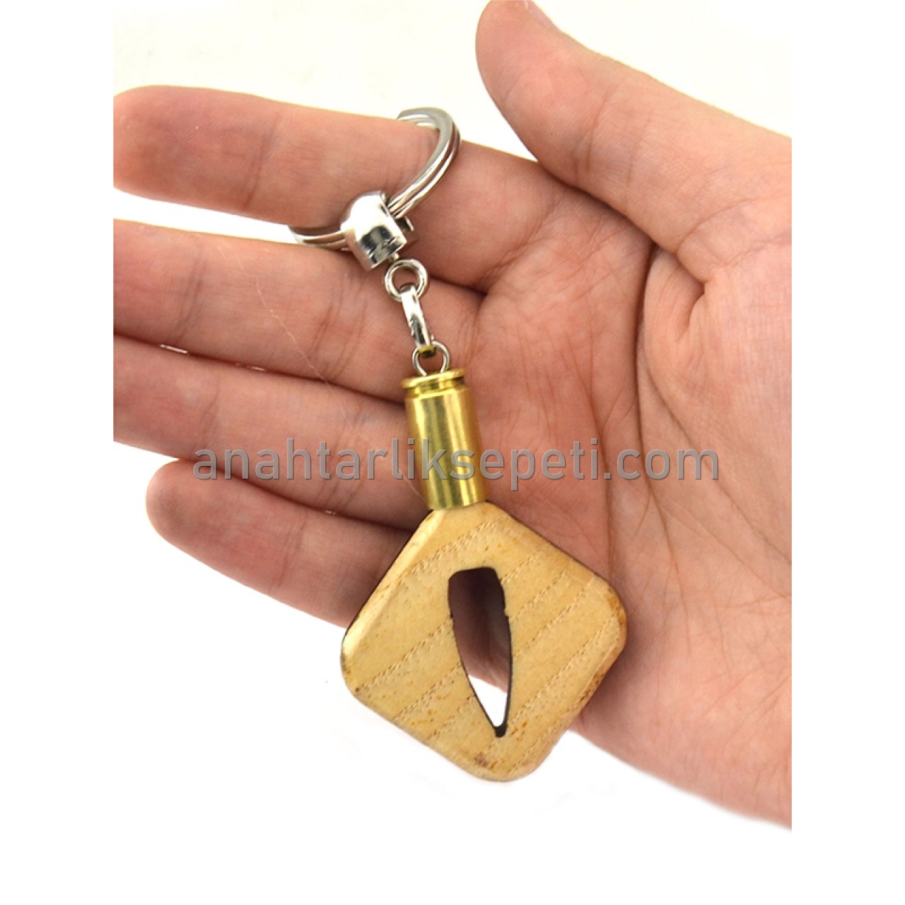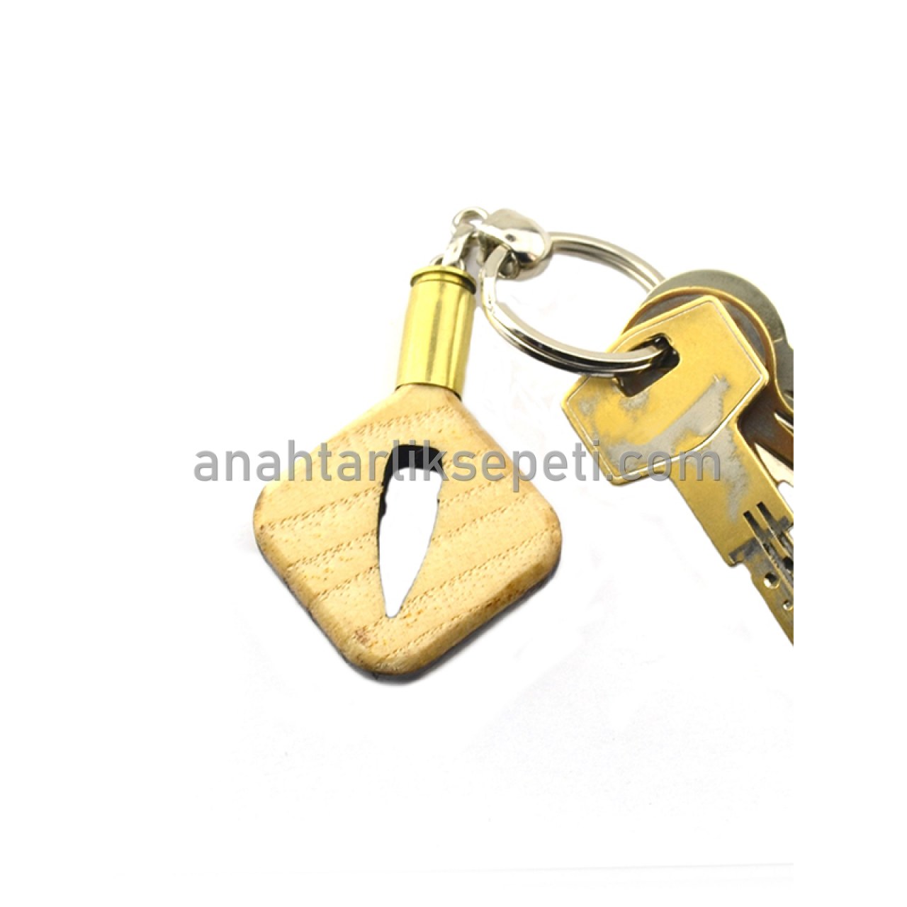 Maket Mermi Ahşap Anahtarlık - 762 Çekirdek Desenli - Natural