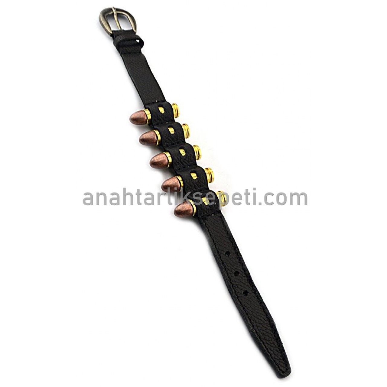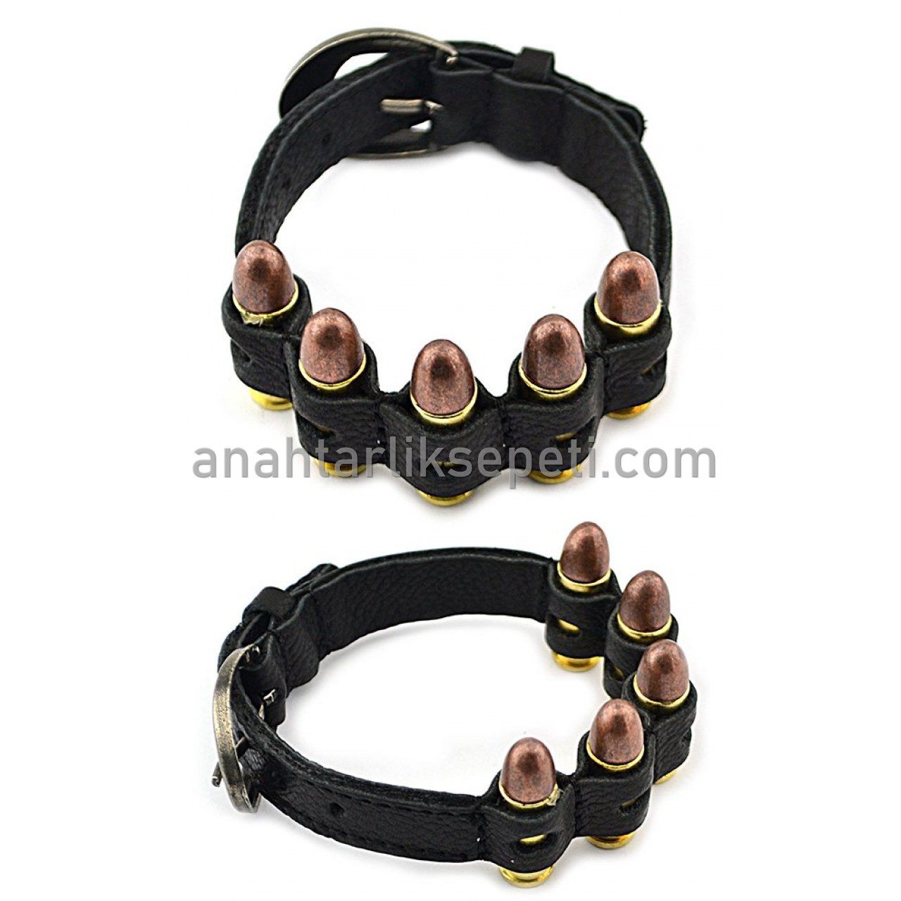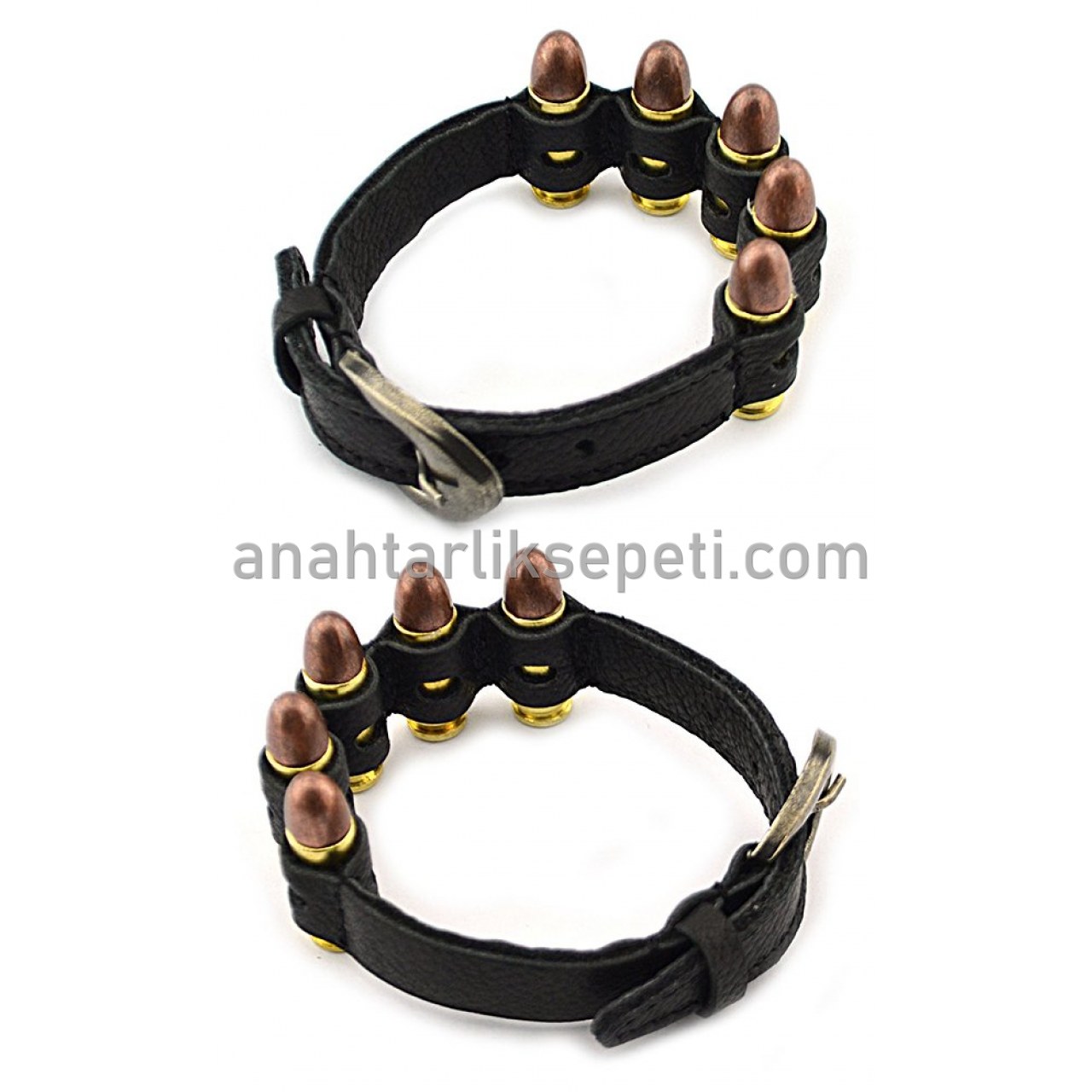 Maket Mermi Deri Bileklik (5 Adet 9x19 Maket Mermi li)