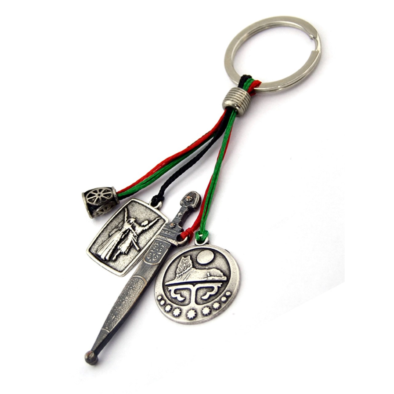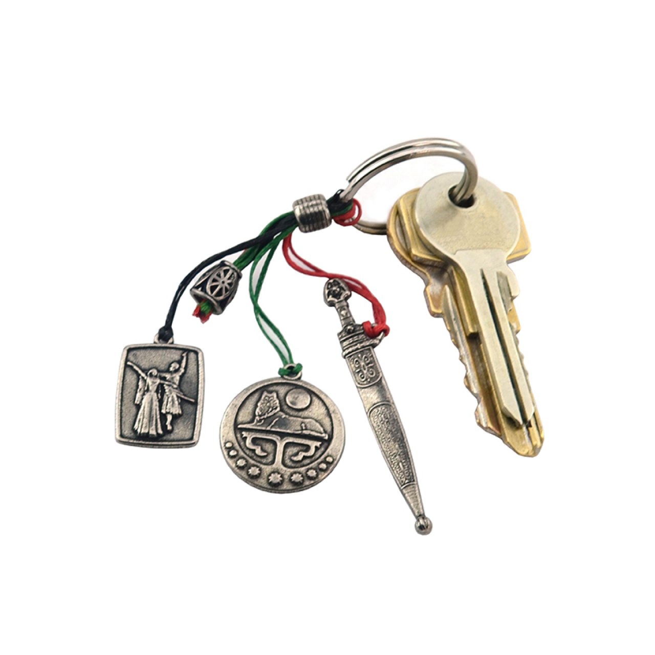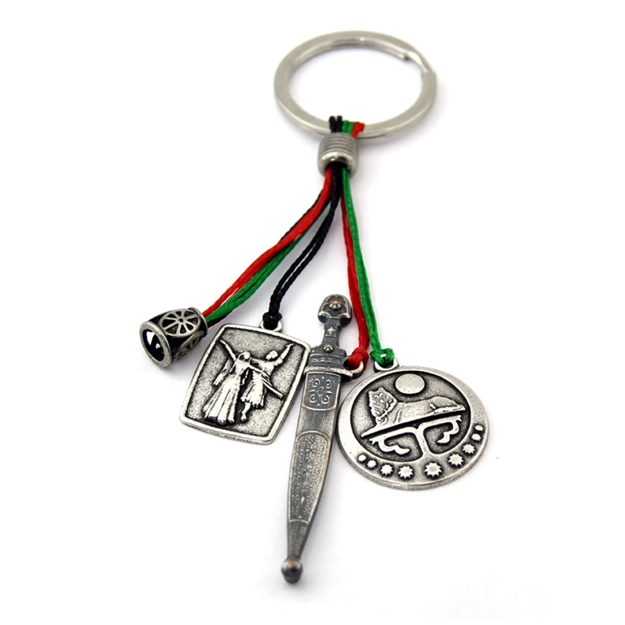 Cluster Keychain – Chechen Flag, Dagger, and Dancing Couple Figurine Special Design