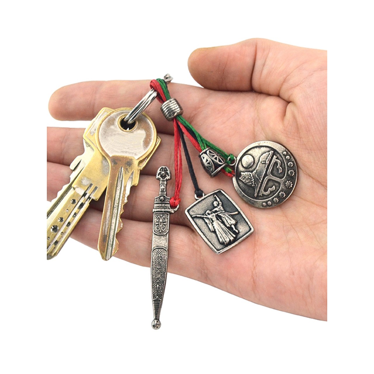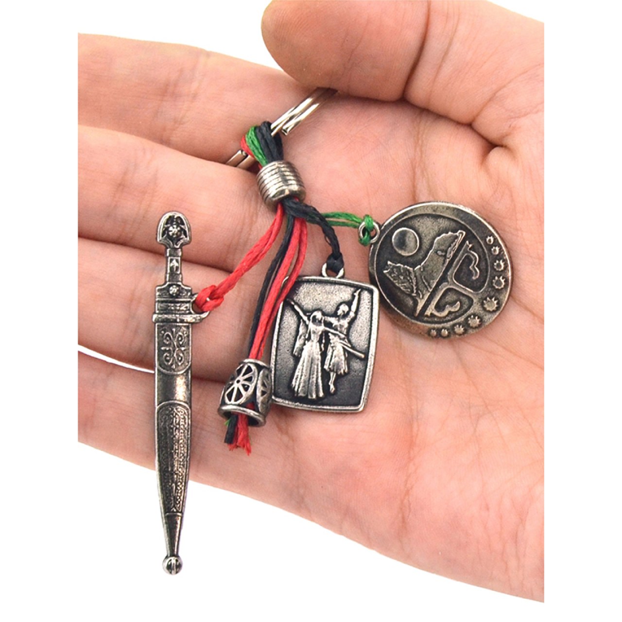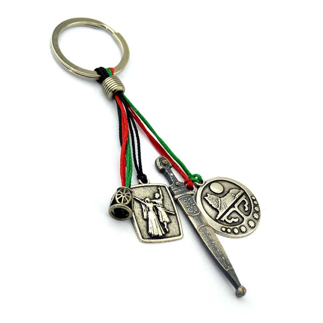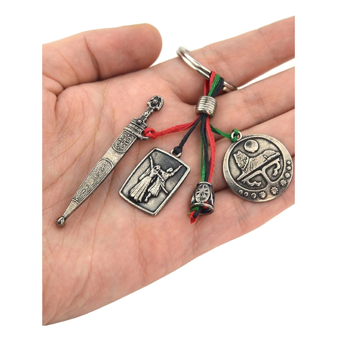 Cluster Keychain – Chechen Flag, Dagger, and Dancing Couple Figurine Special Design