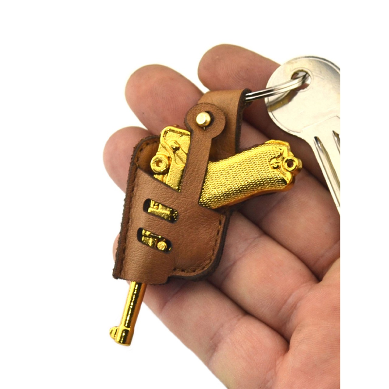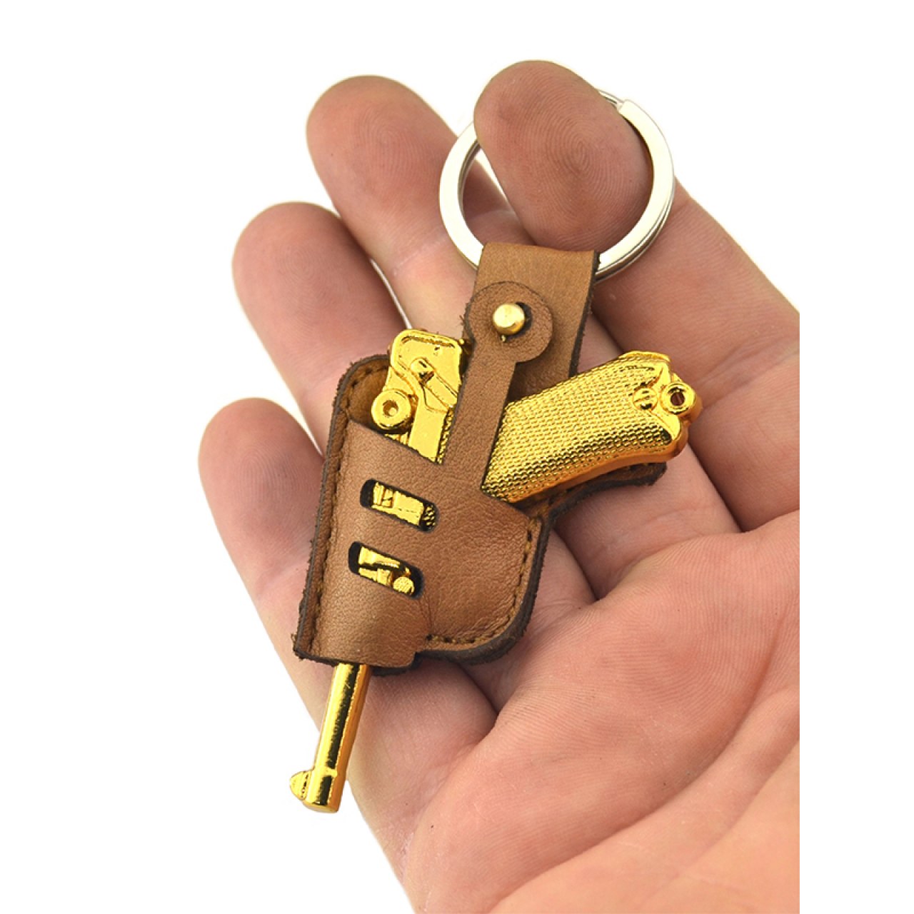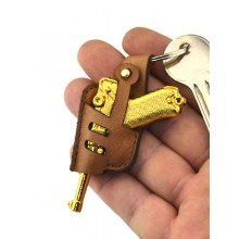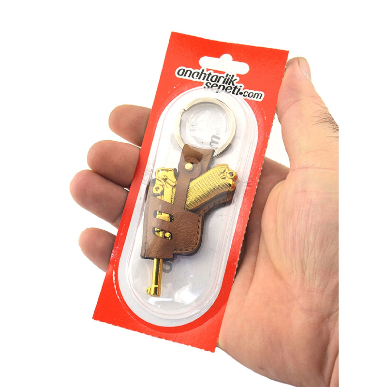 Kılıflı Tabanca Anahtarlık halkası dahil toplam boyu 10 Cm'dir.