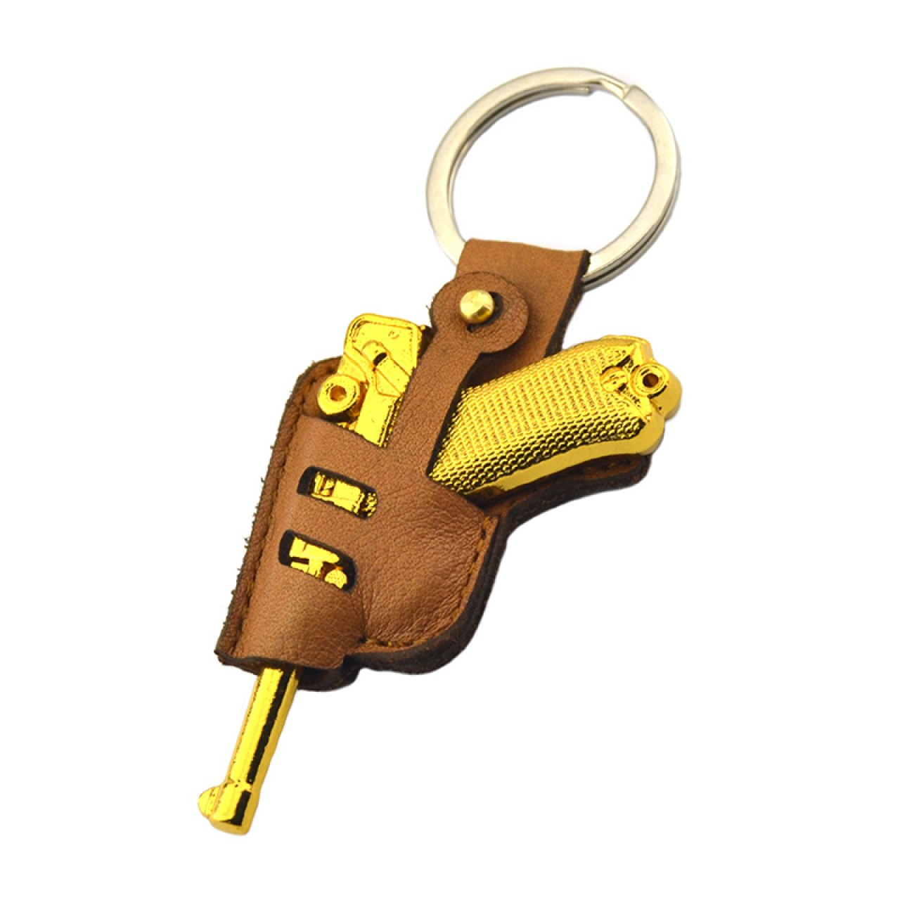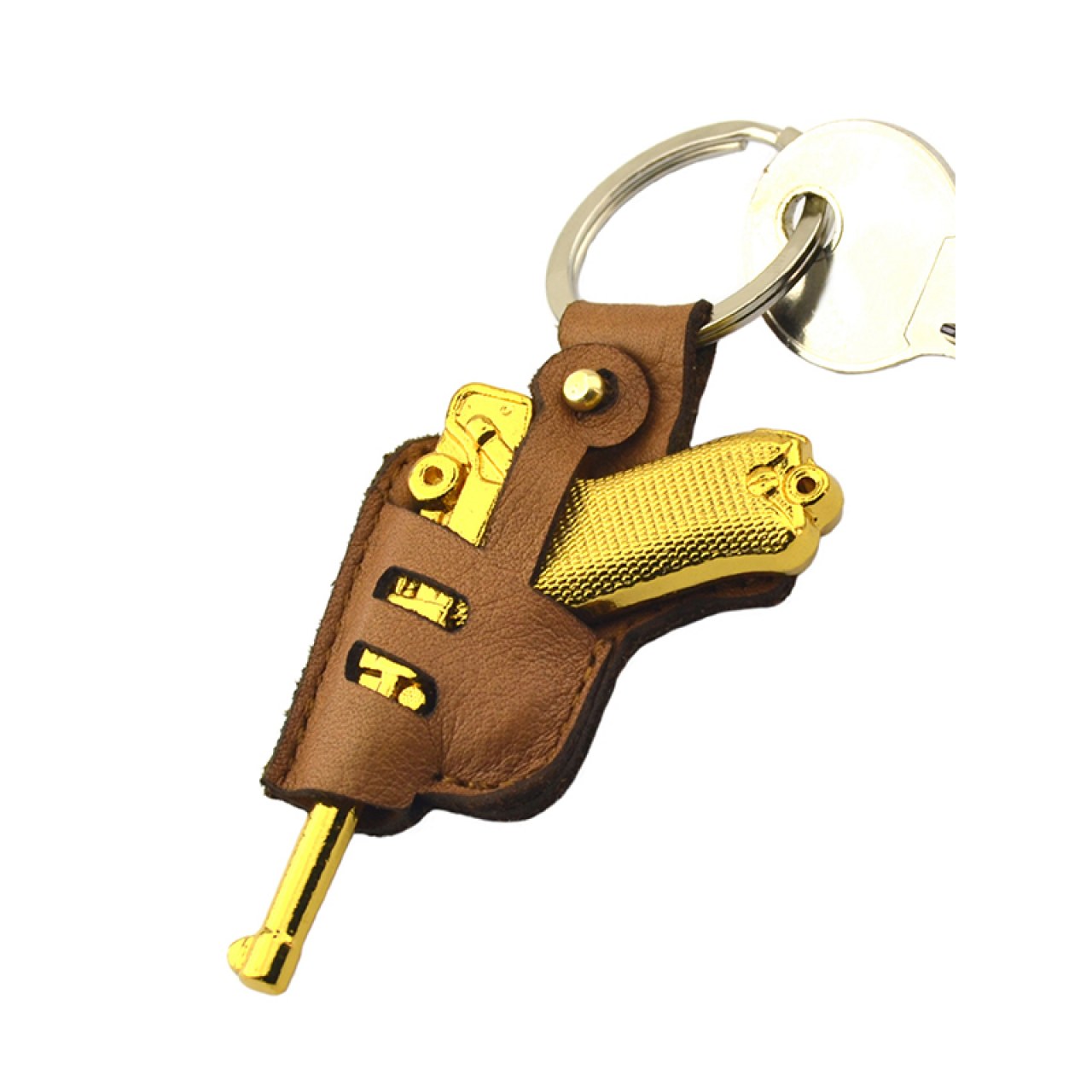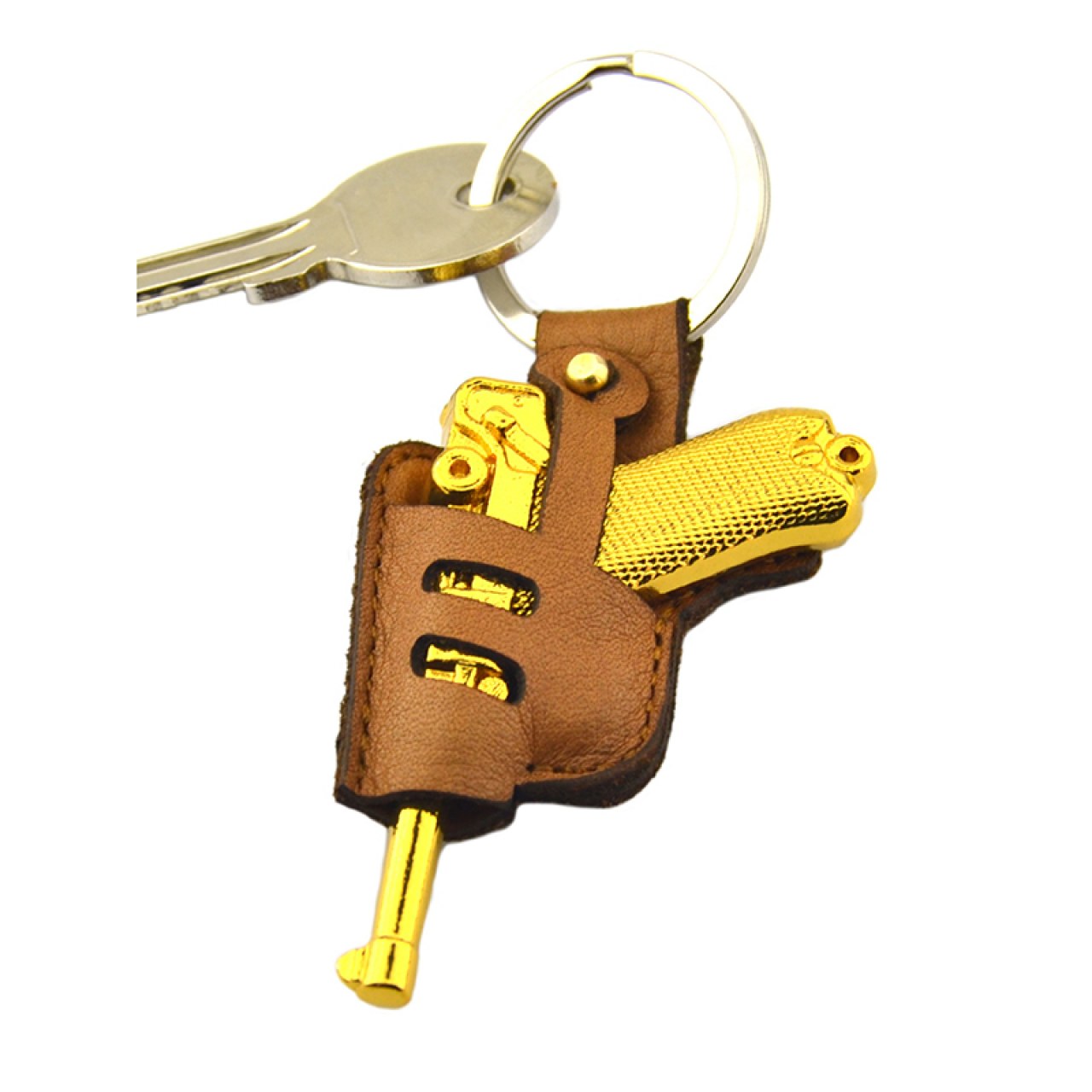 Kılıflı Tabanca Anahtarlık halkası dahil toplam boyu 10 Cm'dir.