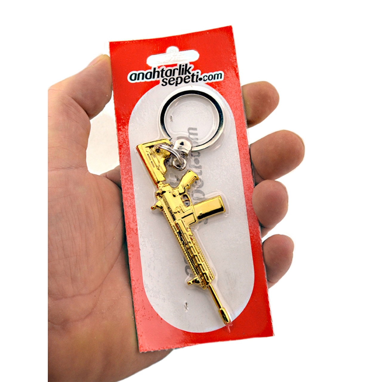 Tüfek Rifle Anahtarlık M-16 Gold Görünümlü modeli, zarif ve dayanıklı tasarımıyla öne çıkar.